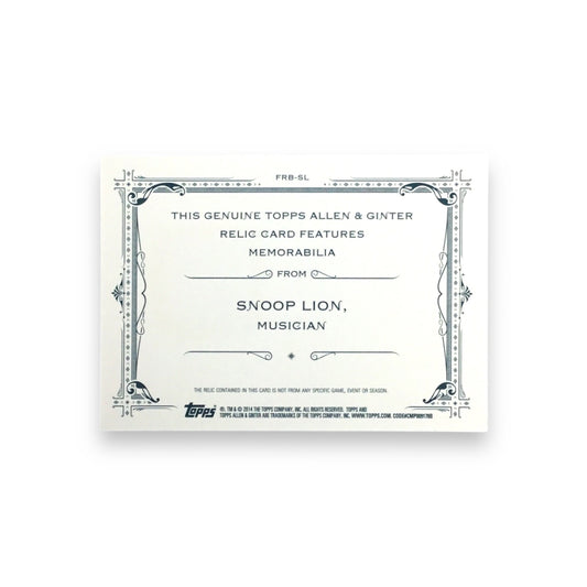 Snoop Lion Topps Allen & Ginter Relic Card | Used Memorabilia