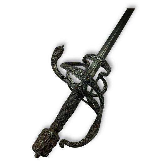Chiseled Swept-Hilt Rapier - Damascus Blade and ornate Gold Inlays