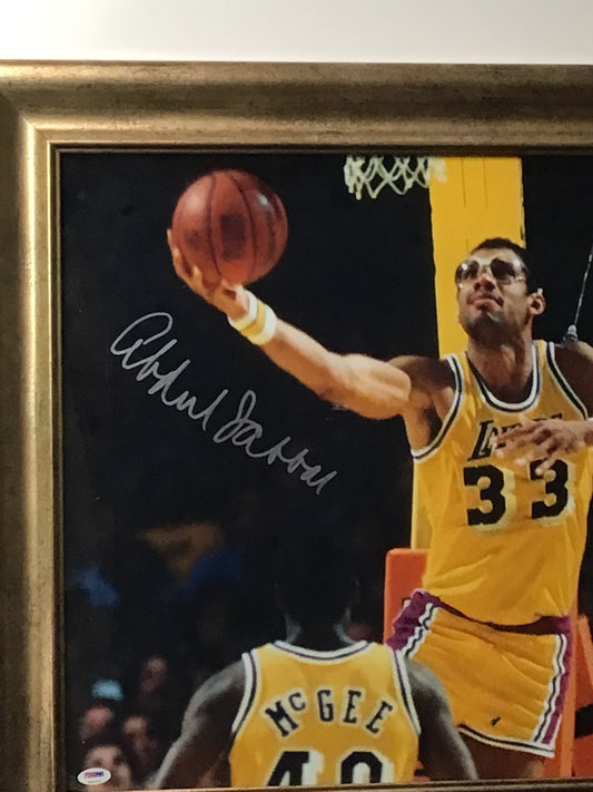 Framed Signed Photo of Kareem Abdul Jabbar w/ Old School Frame & PSA Cert