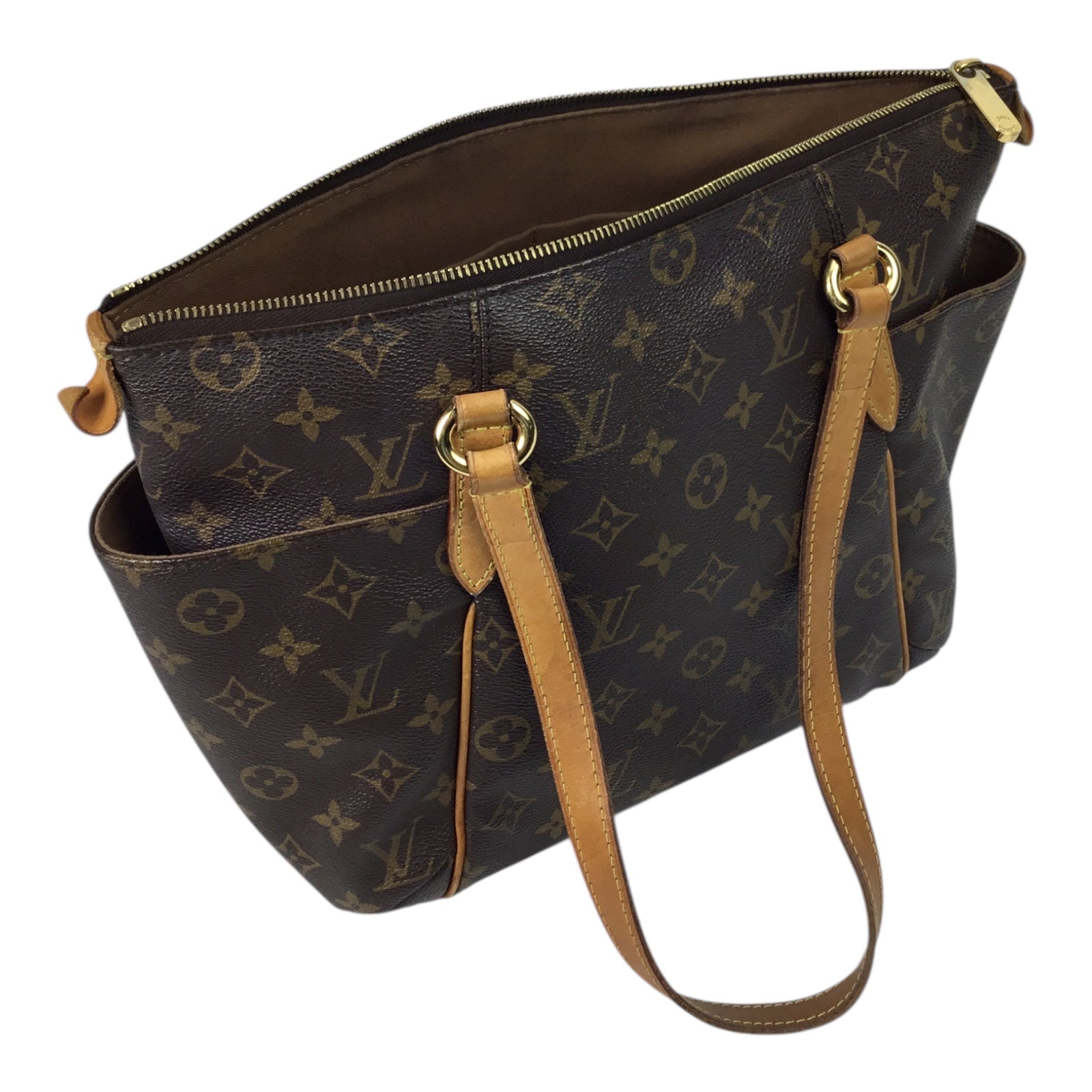 This example dates to 2012 and features traditional vachetta leather shoulder straps and trim, paired with a secure top zip closure. The interior provides ample room for essentials, making the Totally PM a favorite among collectors seeking a timeless Louis Vuitton design with everyday usability. Its enduring monogram aesthetic and discontinued status continue to drive strong interest among vintage and contemporary LV collectors alike.