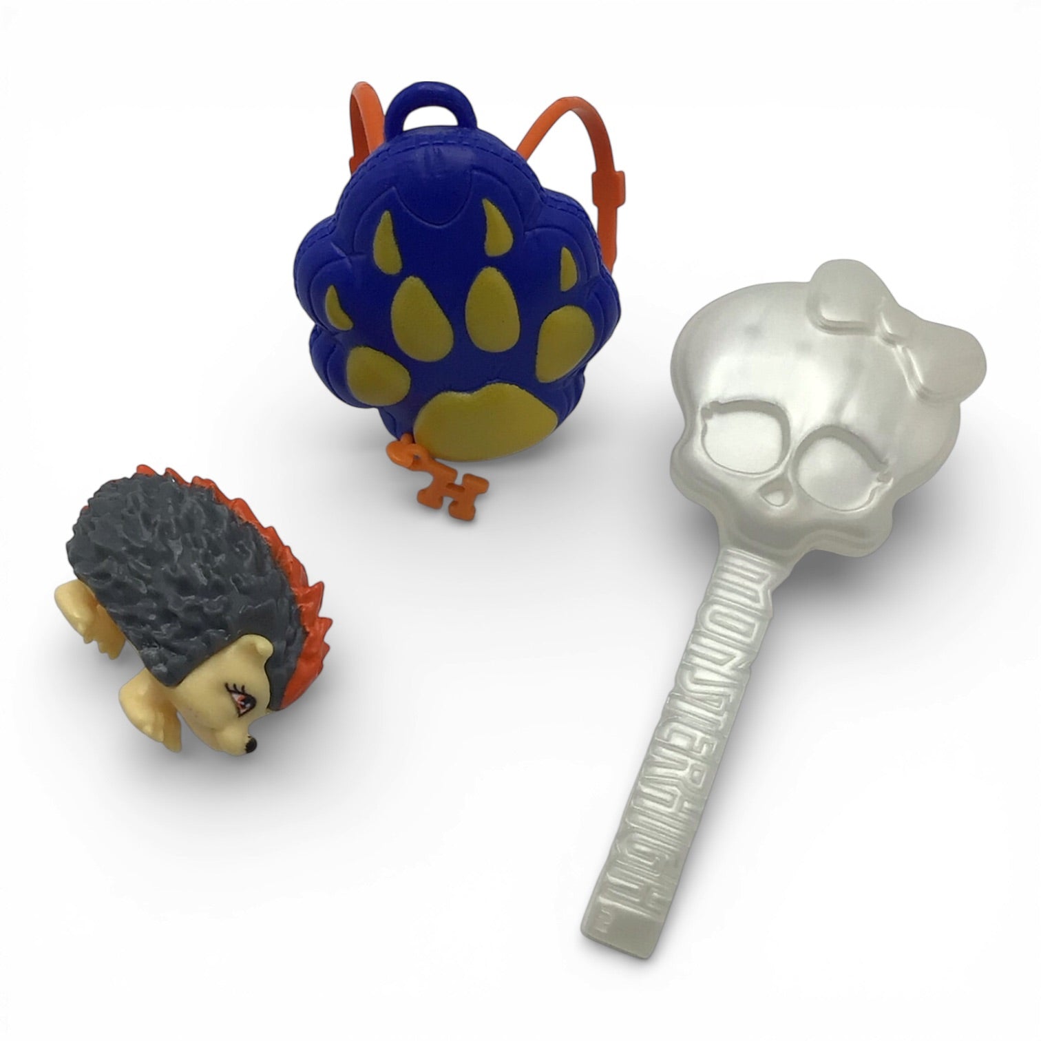 Howleen Wolf from the original Monster High collection brings the fierce werewolf fashionista to your display. This first-generation doll captures her signature look with detailed sculpting and iconic outfit. The complete accessory set includes her loyal pet, backpack, hairbrush, and personal diary. Though the original packaging is absent, this collectible remains a treasured piece for Monster High enthusiasts and doll collectors seeking authentic early releases.