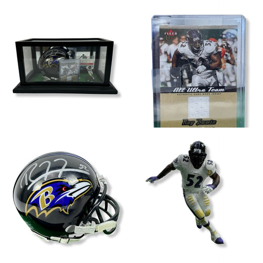 Ray Lewis Signed Ravens Mini Helmet Figure Card Shadowbox w/ COA Unique OOAK NEW